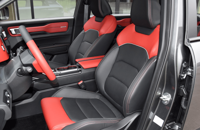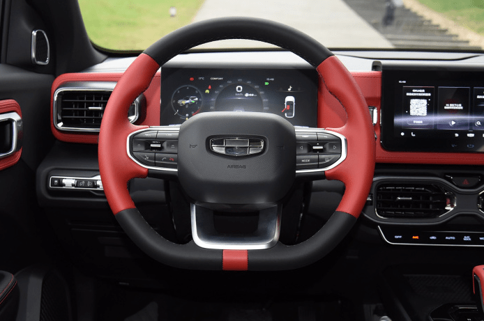 内饰上,吉利ICON同样是前卫个性的风格,提供白棕、黑红、黑橙共三种内饰配色方案可选,尤其是黑红、黑橙非常的亮眼呢。中控台表面应用了大量软质材料包裹,做工也是非常的精致。10.25寸触控液晶屏,10.25寸液晶仪表,也都是时下较为先进的配置。