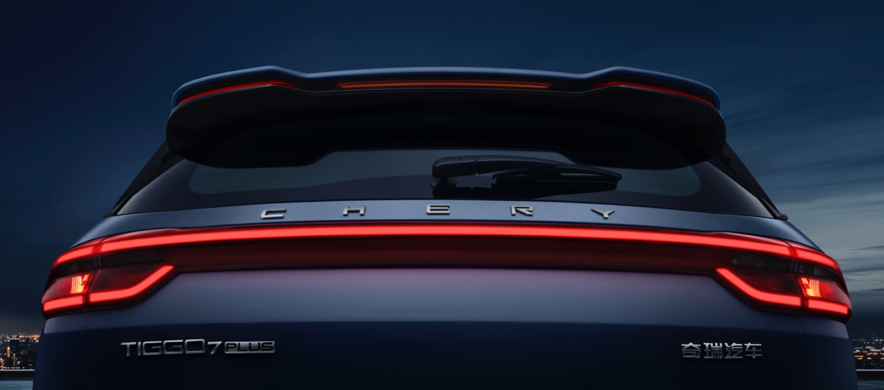 瑞虎7 PLUS潮·翼车尾设计同样走在了时尚前沿,一体贯穿弦月式LED尾灯水平拉伸了视觉效果,配合律动的流光灯效,尽显前卫科技;“CHERY”字母徽标与机能渐层式尾翼、镀铬动感双排气管等潮流设计更赋予了新车时尚、动感元素,仅仅看背影,也能圈粉无数。