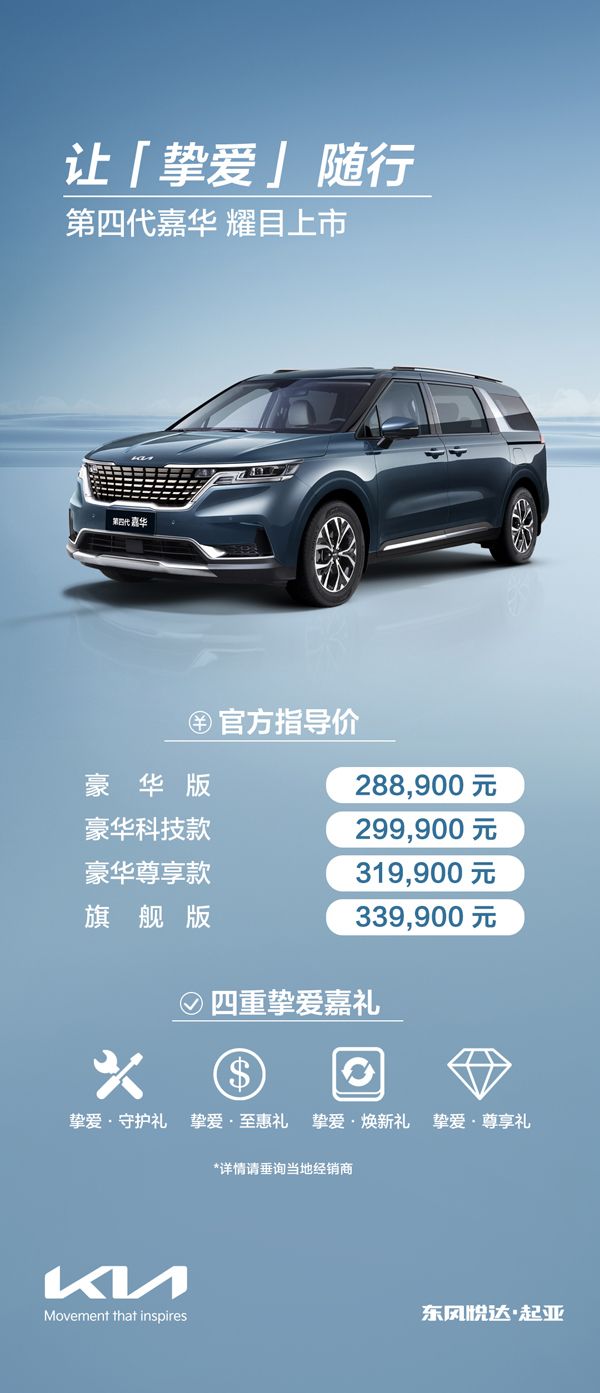 10月30日,东风悦达起亚品牌焕新后的首款全球旗舰MPV第四代嘉华在河南悦胜4S店隆重举办郑州区域上市会,此次发布会共推出4款车型,官方指导价为28.89万元-33.99万元,还带来了包括30天品质无忧承诺、5年/10万公里整车质保、3年6次免费基础保养(含首保)、金融免息、焕新升级补贴、官方交车礼、及年度VIP体验权益等多重挚爱嘉礼,为消费者带来中高端MPV价值新体验。