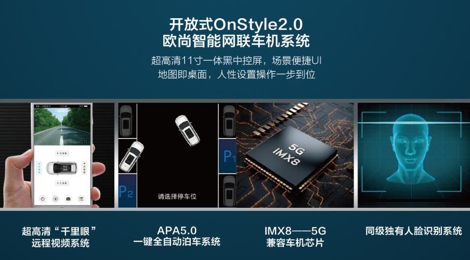 新车搭载行业领先的开放式OnStyle2.0欧尚智能网联系统,配备全方位超高清“千里眼”远程视频系统。特别定制出同级独有的“太空珍藏选装包”,集成行业领先的APA5.0一键全自动泊车系统、同级独有人脸识别系统等功能为一体,科技实力比肩一线BBA豪华汽车品牌,带给客户超越期待的驾享感。新车定价10万级区间,却为客户匹配15万级的智能配置,满足客户在3.0时代对车辆智能、便捷的科技新要求,称得上“汽车界的小米”。