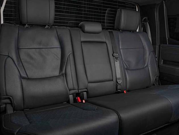 侧面造型方面依然是经典的皮卡风格,A柱部分采用了熏黑处理,营造出了类似悬浮式车顶的造型。整体线条给人的感觉也比较方正,很有硬派气息。轮毂采用了熏黑的密幅式造型,有效增加了档次感。