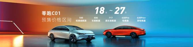 【2022年8月28日,郑州】8月28日,零跑汽车全域自研最新技术成果零跑C01亮相并开启品鉴。聚焦中高级轿车市场,满足用户多场景用车需求,C01共发布500标准续航版、606长续航版、717超长续航版及630 Pro性能版、630 Pro+高性能版5个配置版本,预售价格区间为18万-27万。同时,零跑汽车针对C01推出“0元预定”C位礼遇,预售期间下定,首任车主可享三电终身质保。