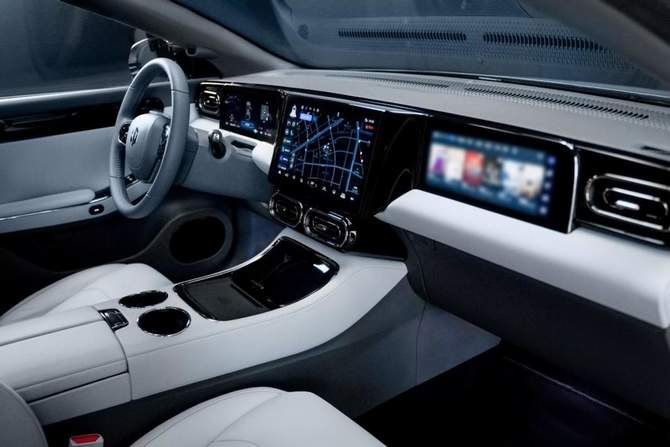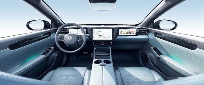 在内饰布局上,C01采用“合而不扰”双客厅设计,以中控台作为座舱核心,与两侧车门构成广角一体设计,拓宽视觉感受。T台型三联屏设计,连贯统一,也让视觉感官向两侧自然延伸。此外,超大面积镀银全景天幕,亦让座舱更加开阔敞亮。