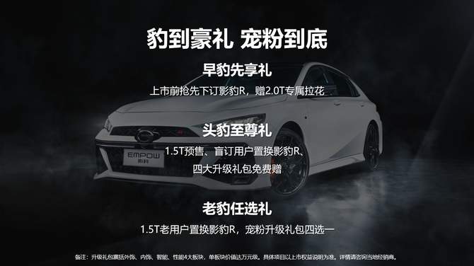 因运动而生,为速度而战。2023年4月15日,影豹2.0T以同级十个“第一”的绝对实力,在第37届大河国际车展上硬核亮相。广汽传祺豫北战区经理郑天佑先生、郑州宏基店总经理宋义凤女士、郑州汇丰店总经理王一帆女士、郑州富达美格店总经理崔树新先生、郑州宏朔达店总经理侯亚伟先生、郑州长鑫店总经理易清女士以及各大主流媒体一起见证了前驱性能王者-影豹2.0T的极致狂飙!影豹R现已全面开启预定,现在订车即享影豹R三重专属预定好礼。
