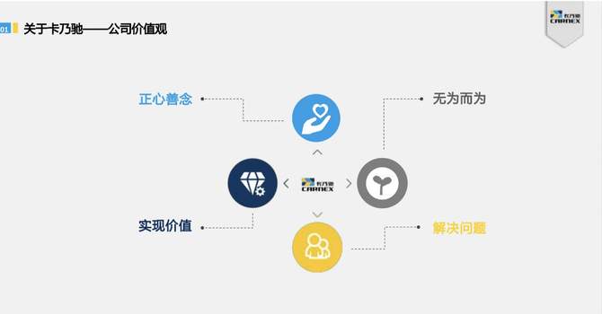 卡乃驰董事长李昇以王阳明的“致良知”为切入点,阐述卡乃驰“正心善念,无为而为,解决问题、实现价值”的价值观。