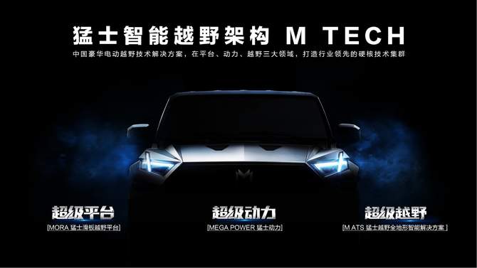 作为M TECH猛士智能越野架构的首款量产车,猛士917将携MORA猛士滑板越野平台、MEGA POWER猛士动力、猛士越野全地形智能解决方案M ATS三大行业领先硬核技术集群,全面刷新消费者对于硬派越野的认知与体验。