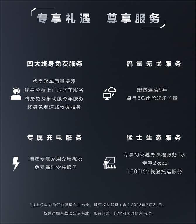 据悉,作为猛士科技首款豪华电动越野产品,猛士917预售价格区间为70万-160万元,与此同时预订猛士917的用户,更可获得多项尊崇专享礼遇。