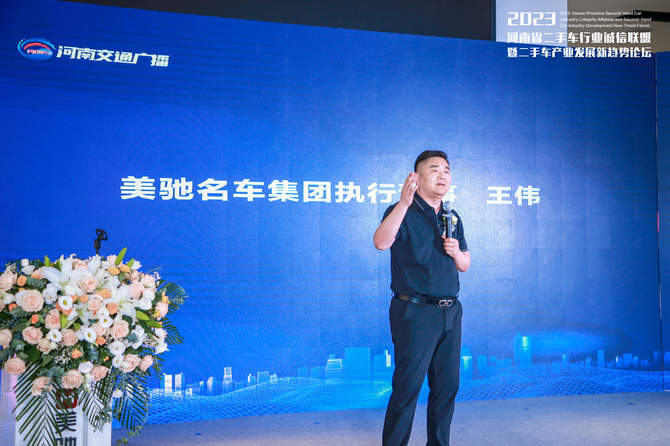 作为二手车诚信平台的积极响应者,河南省二手车诚信企业的代表、美驰名车广场也希望通过参与诚信联盟,为消费者提供更多质优价宜的二手车产品。河南美驰汽车销售服务有限公司执行董事王伟发表讲话。