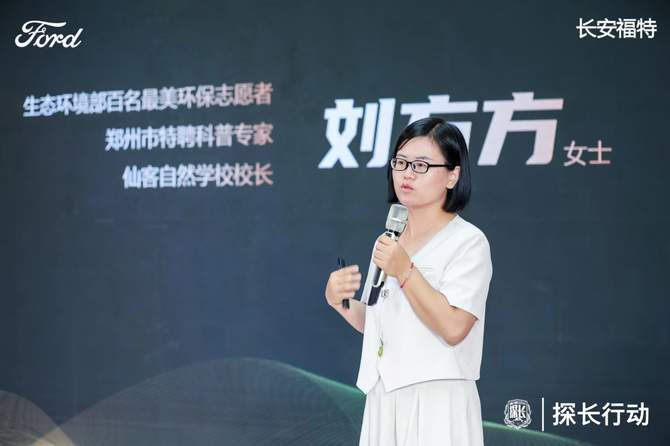 郑州市特聘科普专家 仙客自然学校校长 刘方方女士:带来关于黄河流域生物多样性的介绍,并现场发起了黄河小卫士跟随福特探险者走进小浪底探寻黄河治沙调水研学的招募活动。