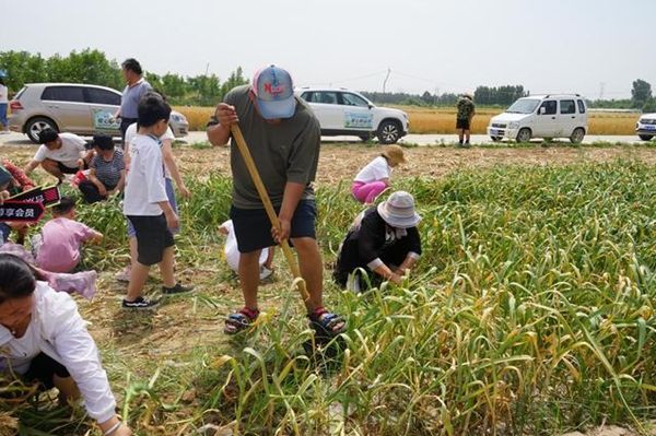 5月23日,合众汽车集团带领20多辆车、80人至中牟县沙窝至村民地里进行挖蒜,一方面解除村民挖蒜费力的麻烦,一方面帮助村民销售大蒜。